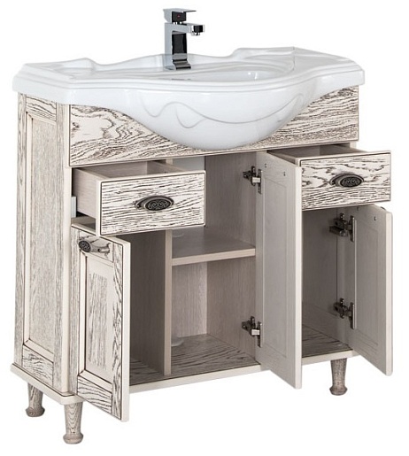 - Тумба: Aquanet Тесса 85, цвет жасмин/сандал, 3 распашные дверцы, 2 выдвижных ящика (185806)
