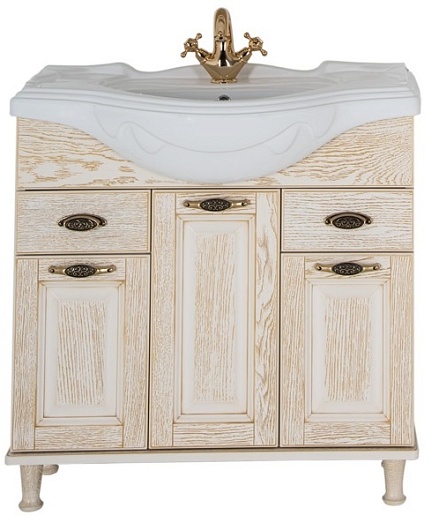- Тумба: Aquanet Тесса 85, цвет жасмин/золото, 3 распашные дверцы, 2 выдвижных ящика (185804)