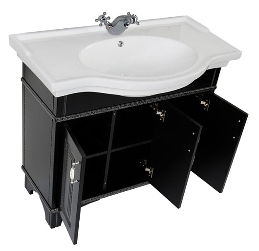 - Тумба: Aquanet Валенса 100, цвет черный, краколет/золото, 4 распашные дверцы (180310)
