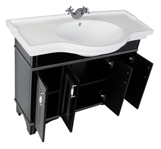 - Тумба: Aquanet Валенса 110, цвет черный, краколет/золото, 4 распашные дверцы (180309)