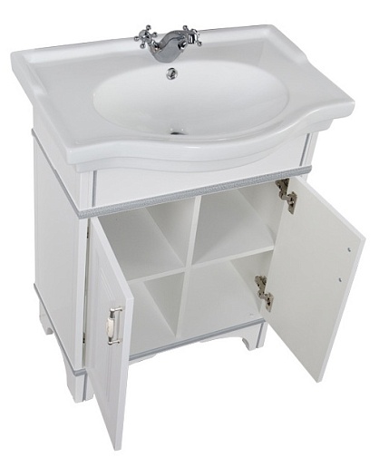 Тумба под раковину Валенса 70 белый кракалет/серебро