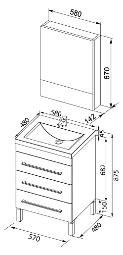 Aquanet Мебель для ванной Верона 58 белая напольная (230310)