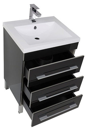 Тумба под раковину Верона 58 напольная, ящики, черная