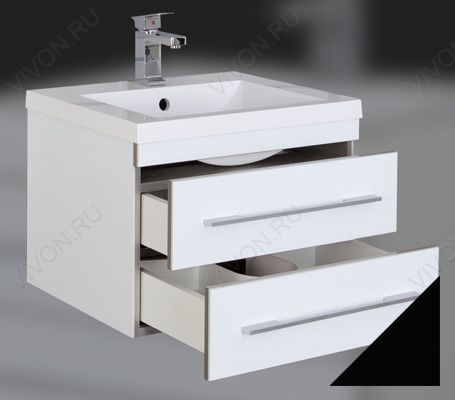 - Тумба с раковиной Aquanet Верона 58 черная: раковина, ящик выдвижной - 2 шт., ручка (хром) - 2 шт.