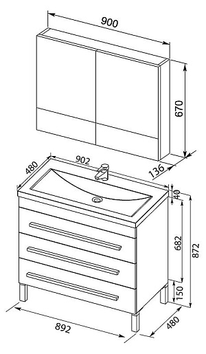 - Раковина: Нота-90, литьевой мрамор (204119)