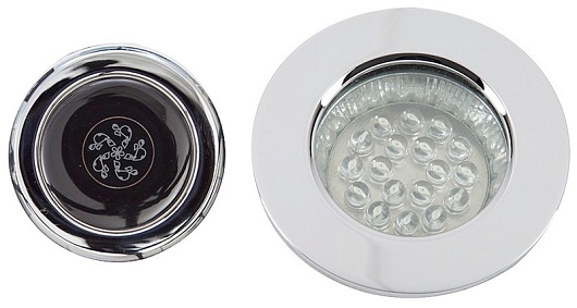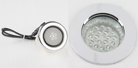 - Светодиодный светильник с наружным диаметром 65 мм, состоящий из 18 бесцветных светодиодов (теплый свет)