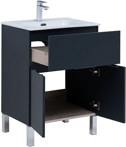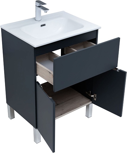 Aquanet Тумба под раковину Алвита New 60 1 ящик 2 дверцы антрацит матовая
