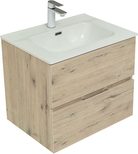 Aquanet Тумба под раковину Алвита New 60 2 ящика подвесная дуб веллингтон белый