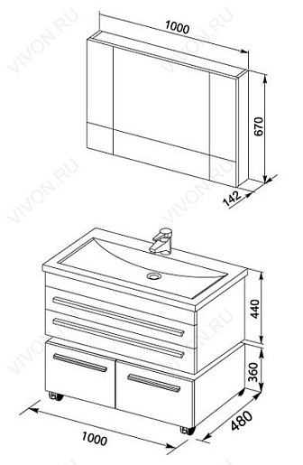 Размеры ШxГxВ: 1000х480х360 мм