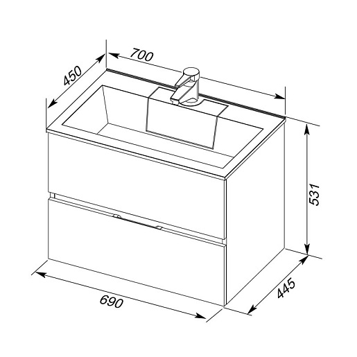 - 184302 Тумба под раковину "Алвита 70" с двумя выдвижными ящиками на доводчиках