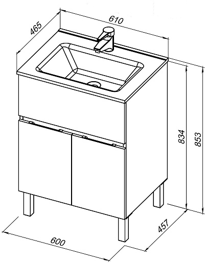 Тумба с раковиной Aquanet Алвита New 60 1 ящик 2 дверцы - арт. 277546 / 254363.