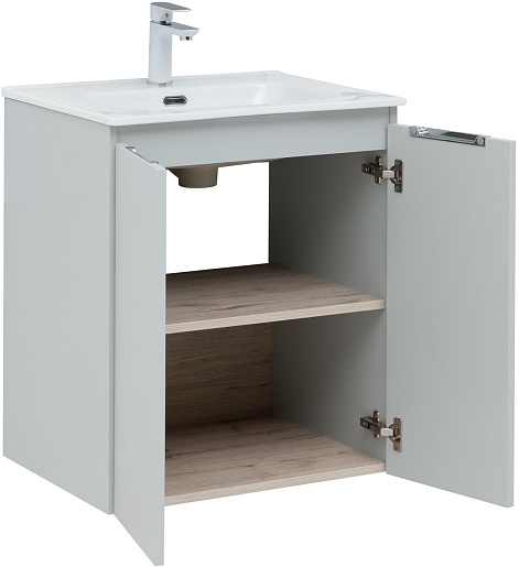 Тумба под раковину Алвита New 60 2 дверцы подвесная серая матовая