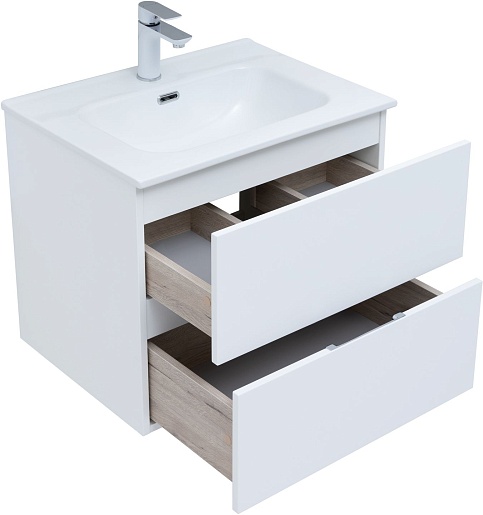 Aquanet Тумба с раковиной Алвита New 60 2 ящика подвесная белая матовая