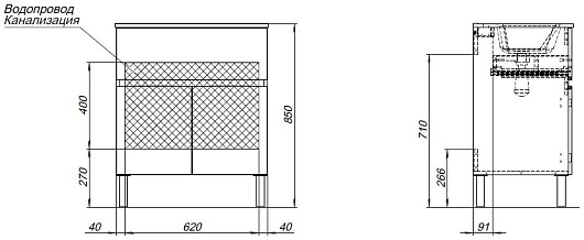 - 1 выдвижной ящик, 2 распашные дверцы.