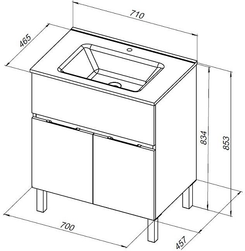 Тумба с раковиной Aquanet Алвита New 70 1 ящик 2 дверцы - арт. 284027 / 303902.