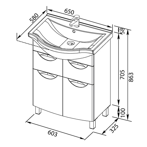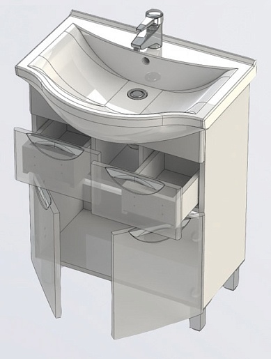 - 178255 тумба под раковину Асти 65 белая: две распашные дверцы, два выдвижных ящика