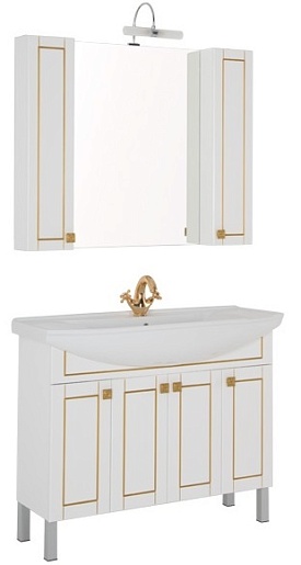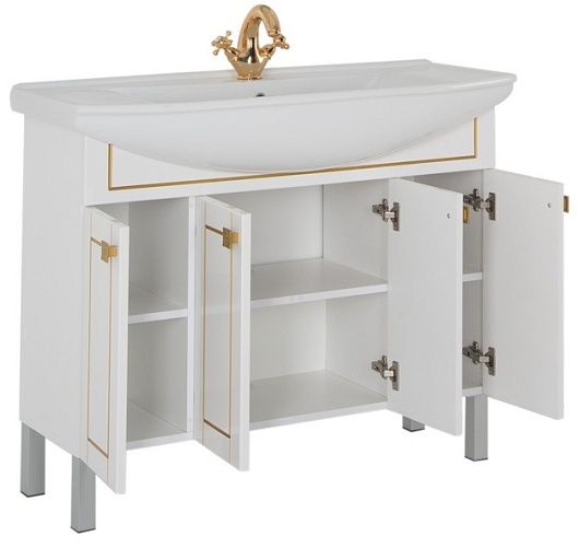 - Тумба: Aquanet Честер 105, цвет белый/патина золото, 4 распашные дверцы (00186097)