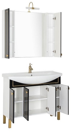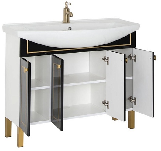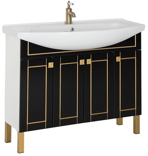- Тумба: Aquanet Честер 105, цвет черный/патина золото, 4 распашные дверцы (00186098)