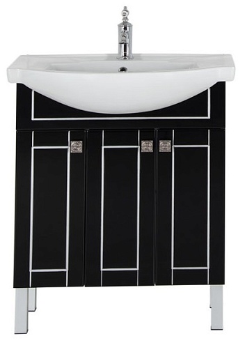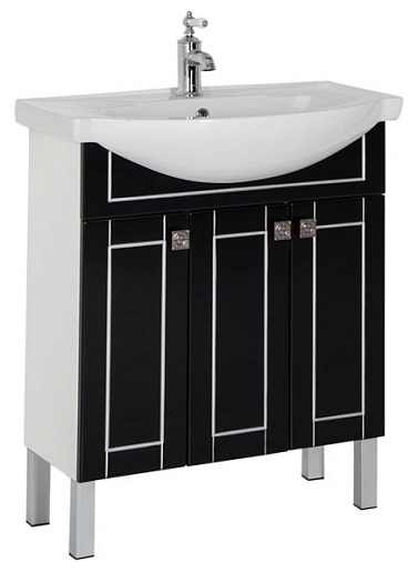 - Тумба: Aquanet Честер 75, цвет черный/серебро, 3 распашные дверцы (186101)