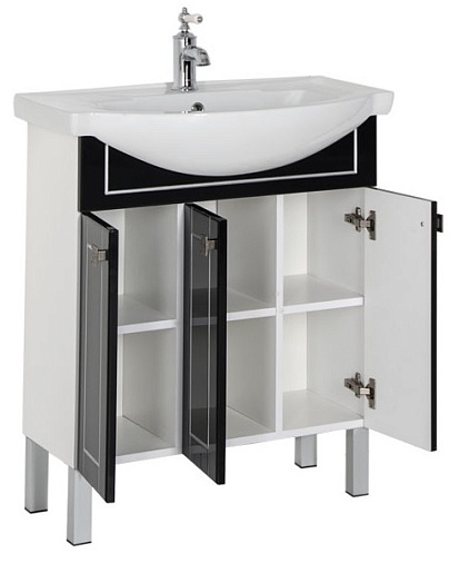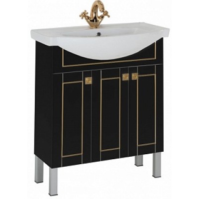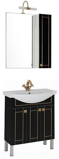 - Тумба: Aquanet Честер 75, цвет черный/золото, 3 распашные дверцы (00186099)