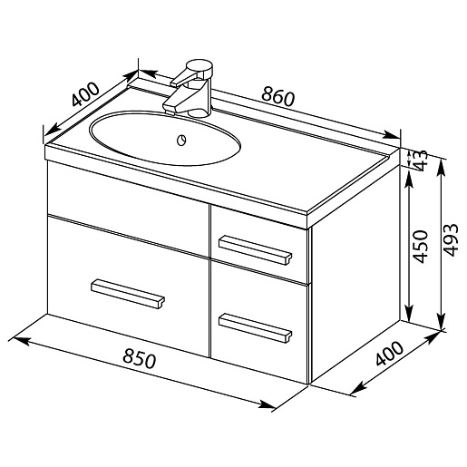 Размеры ШxГxВ: 850x400x490 мм