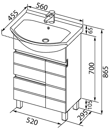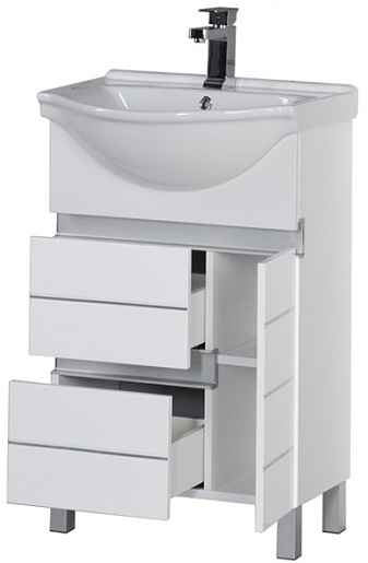 - тумба под раковину Aquanet Доминика 55 белая: дверца распашная - 1 шт., ящик выдвижной - 2 шт.