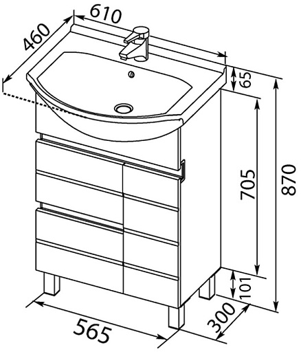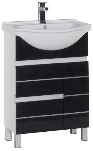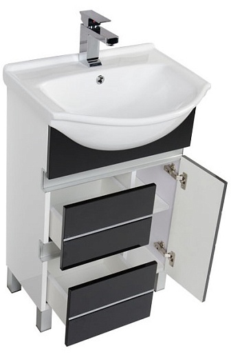 - тумба под раковину Aquanet Доминика 60 черная: дверца распашная - 1 шт., ящик выдвижной - 2 шт.