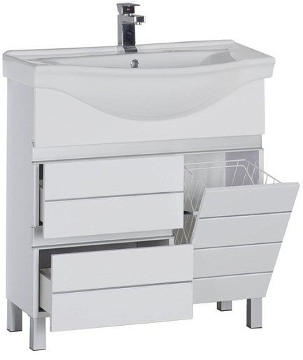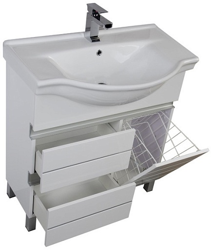 - Тумба: Aquanet Доминика 80, цв.белый, 2 выдвижных ящика, 1 распашная дверца (172375)