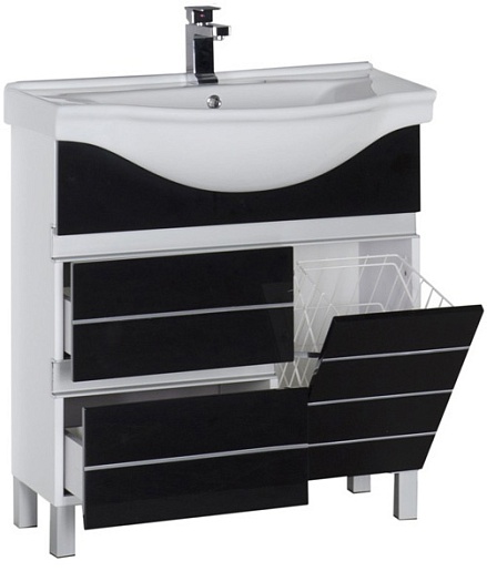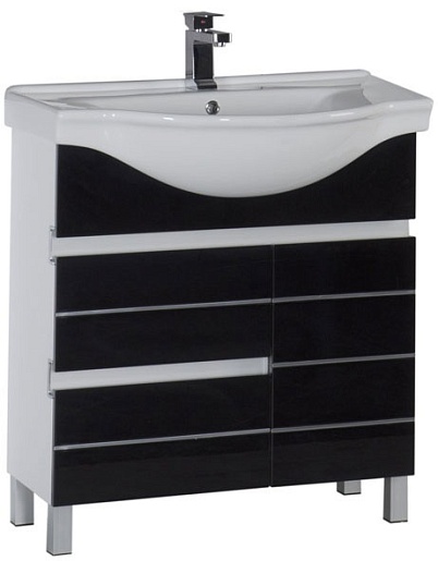 - Тумба: Aquanet Доминика 80, цв.черный, 2 выдвижных ящика, 1 распашная дверца (172376)
