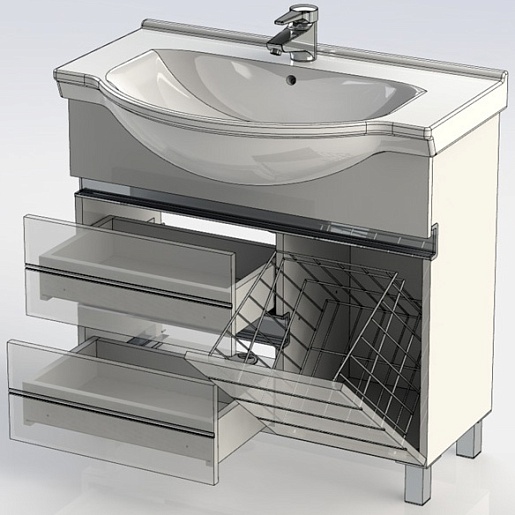 Тумба с раковиной Доминика 80" с бельевой корзиной, арт. 172376+169551