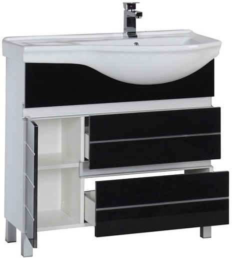 - тумба под раковину Aquanet Доминика 90 R черная: дверца распашная - 1 шт., ящик выдвижной - 2 шт.