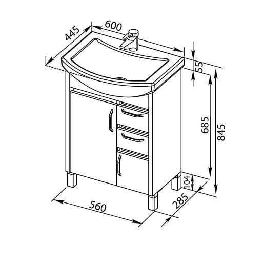 Тумба с раковиной «Донна 60» — арт. 00176070