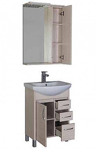 - тумба под раковину Aquanet Донна 60 светлый дуб: распашная дверца - 1 шт., ручка - 4 шт., выдвижной ящик - 3 шт.