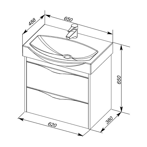 - 183051 Тумба под раковину "Франка 65" подвесная: два выдвижных ящика, метабоксы