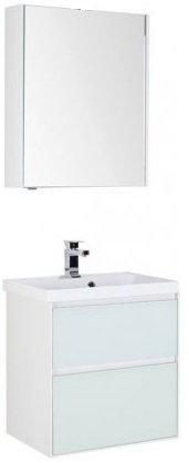 - Тумба: Aquanet Гласс 60, цвет белый, ящики цвета Дуб сонома, 2 выдвижных ящика (196961)