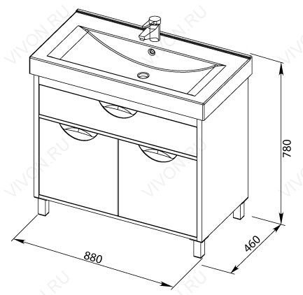 - Описание: напольная тумба с двумя распашными дверцами и выдвижным ящиком, фурнитура хром. Фасад МДФ, корпус ЛДСП. Тумба комплектуется фаянсовой раковиной "Shenxin 9092" (арт.177118) .