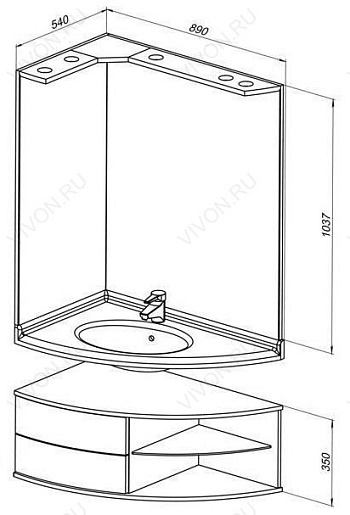 Тумба с раковиной «Корнер» open правосторонняя — арт. 158823