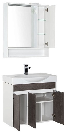 Тумба: Aquanet Коста 76, цвет белый/дуб антик, 3 распашные дверцы (188407)