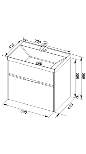 - Раковина: Орлеан 70, донный клапан QUICK CLAC, литьевой мрамор (179394)