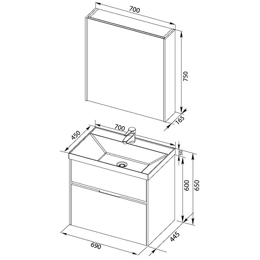 - Тумба: Aquanet Латина 70, цвет белый (фасад бордо), 2 выдвижных ящика (180034)