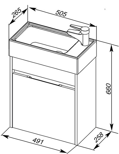 - 7045-KL Рак.-столешница 50 cm (TOP COUNTER) Sanovit (182338) с асимметричной установкой смесителя
