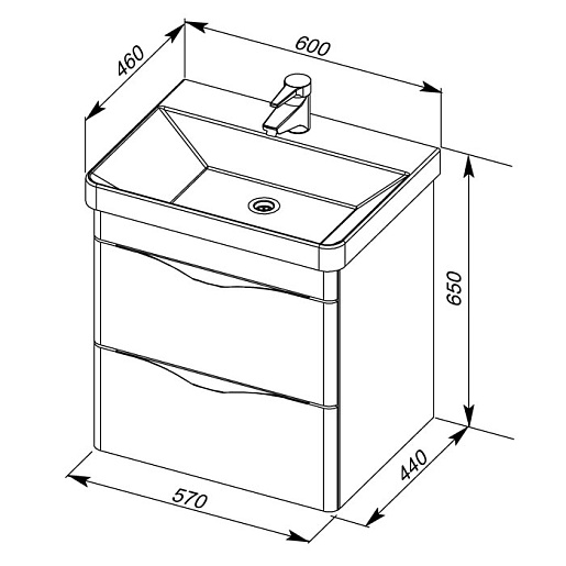 - 183081 Тумба под раковину "Орлеан 60" подвесная, с двумя выдвижными ящиками, метабоксы