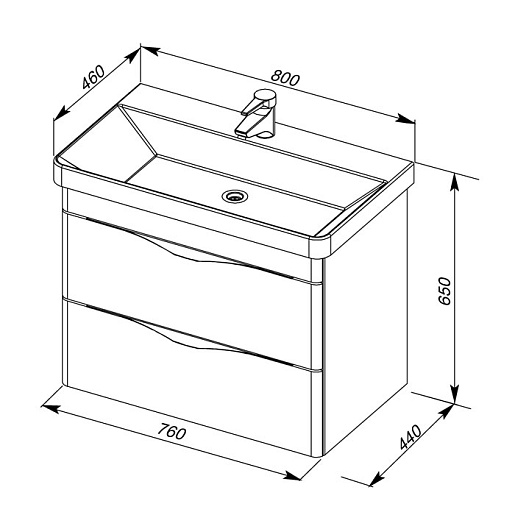 - 183082 Тумба под раковину "Орлеан 80" подвесная, с двумя выдвижными ящиками, метабоксы