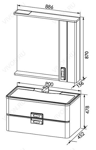 Размеры ШхГхВ: 900х452х478 мм