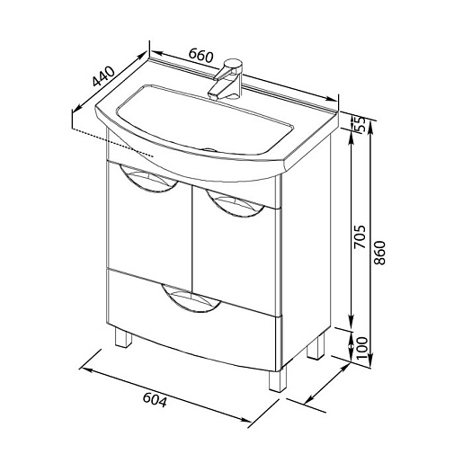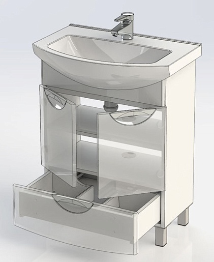 - тумба под раковину Парма 65 с двумя распашными дверцами и выдвижным ящиком
