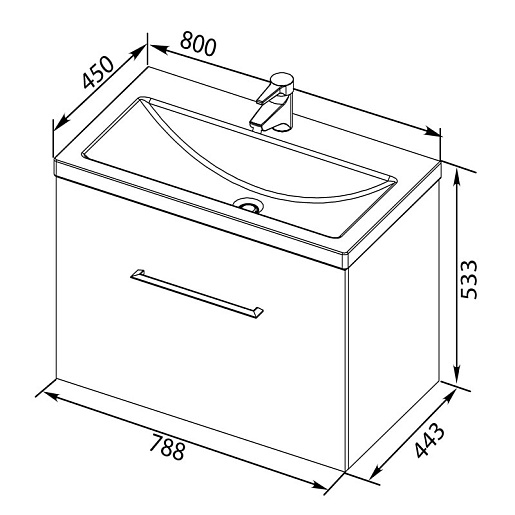 Тумба: Aquanet Порто 80, цвет белый, 1 выдвижной ящик (195731) Раковина-столешница: COMO 80 Cersanit (183660)