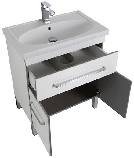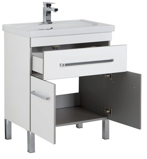 - тумба под раковину Aquanet Сиена 70 белая: выдвижной ящик - 1 шт., дверцы - 2 шт., ручка (хром) - 3 шт.