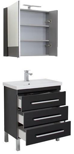 Aquanet Тумба с раковиной Сиена 70 напольная, ящики, черная