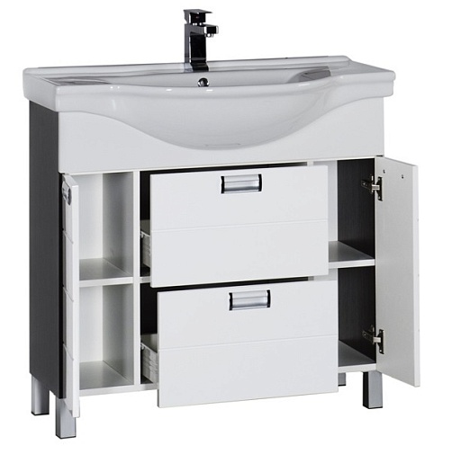 - тумба под раковину Aquanet Сити 90 венге: дверца распашная - 1 шт., ящик выдвижной - 2 шт., ручка - 3 шт.