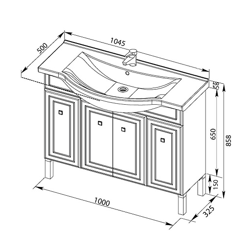 - 181503 Тумба под раковину Стайл 105 с четырьмя распашными дверцами